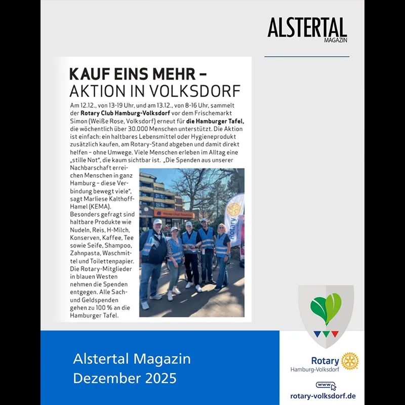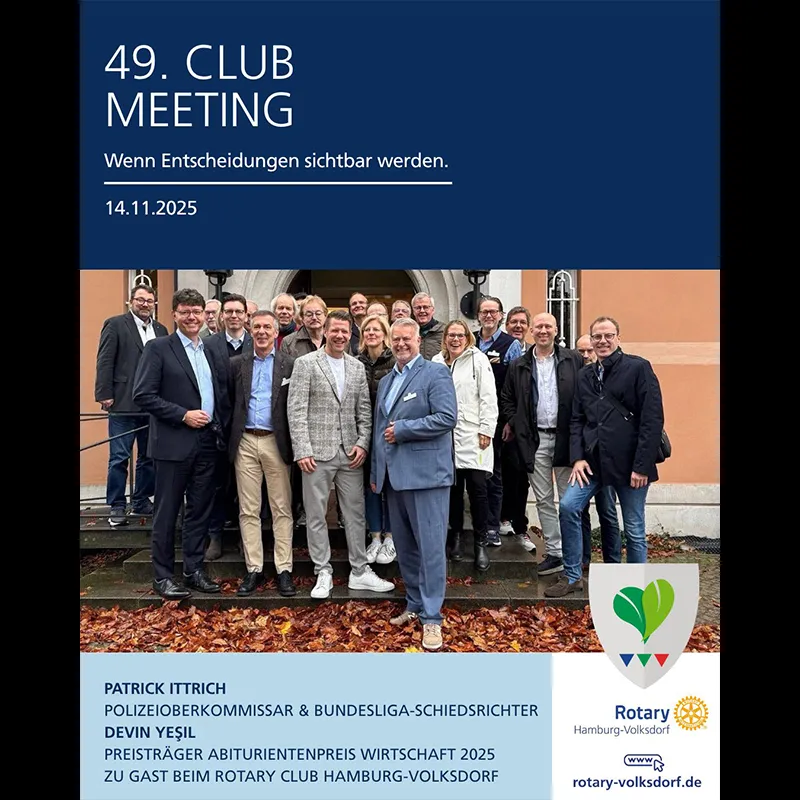 Herzlich willkommen beim Rotary Club Hamburg-Volksdorf! Wir freuen uns, dass Sie zu uns gefunden haben. Unser Club wurde im Juni 2024 mit 28 Mitgliedern gegründet, feierte im September 2024 seine feierliche Charter – und wächst stetig weiter. Heute zählen wir 37 engagierte Persönlichkeiten, die sich mit Herz, Haltung und Humor für das Gemeinwohl einsetzen.
